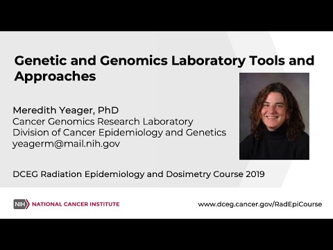 Dr. Meredith Yeager presents an overview of genetic and genomic laboratory tools and approaches, beginning with the initial sequencing and analysis of the human genome; types of polymorphisms (variations); discussion of which variants contribute to disease; clarification of terminology; genetic cancer susceptibility; technological advances and community efforts; examples of genetic studies; analyzing and storing large data sets; study design from a lab point of view; and data sharing.